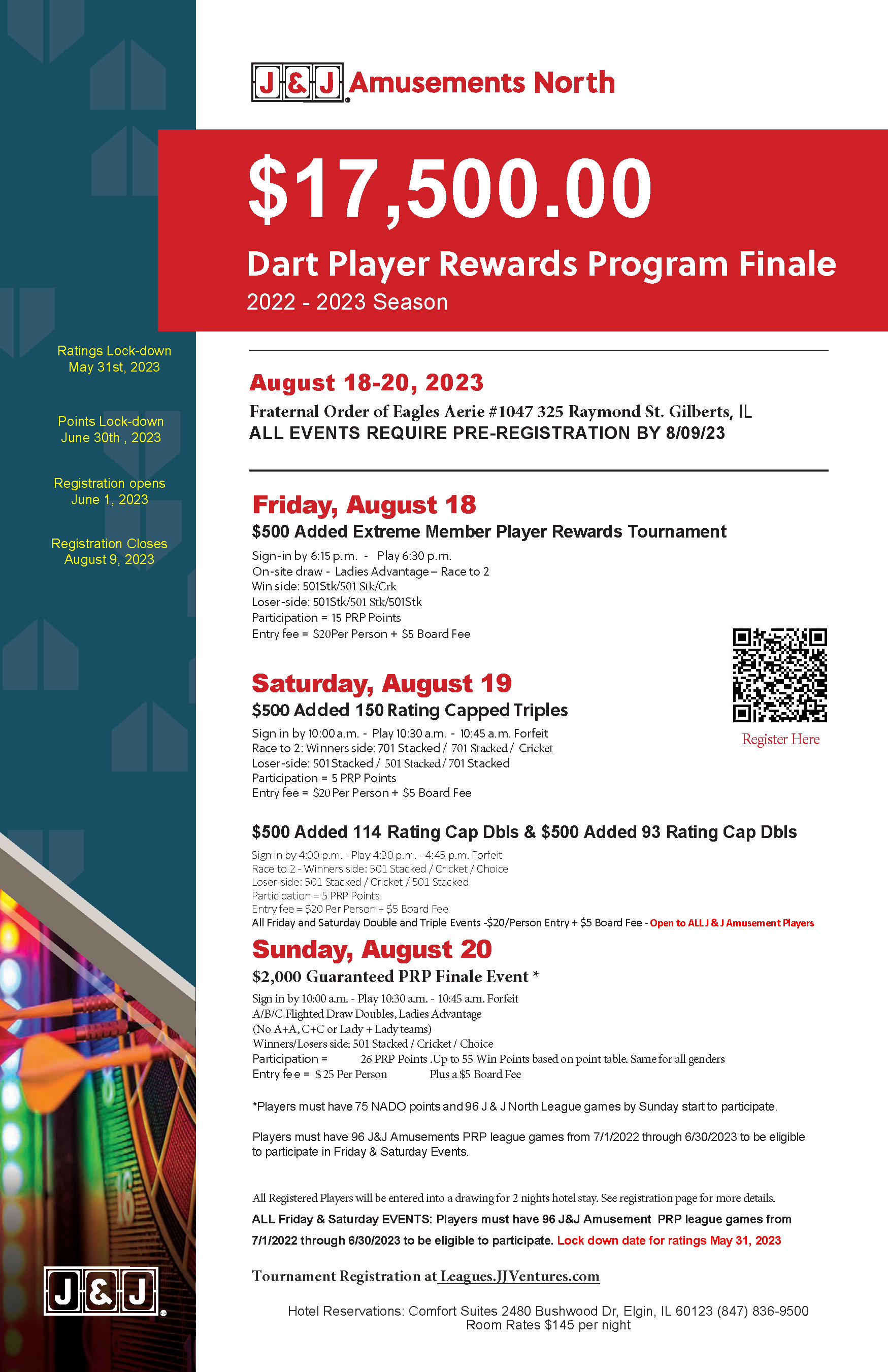 J&J Amusements North Member Player Rewards Tournaments 2022-2023