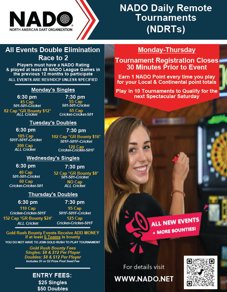 PLAYERS MUST HAVE A NADO RATING & 48 NADO LEAGUE GAMES IN THE PREVIOUS 12 MONTHS TO PARTICIPATE IN THIS TOURNAMENT.