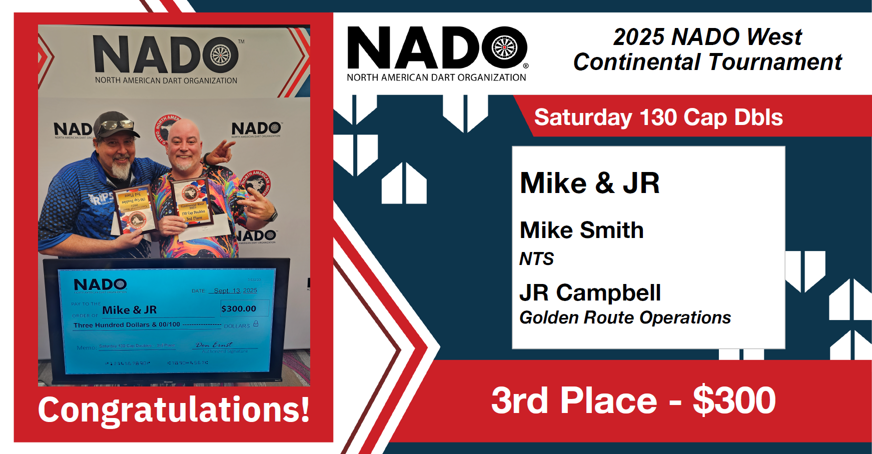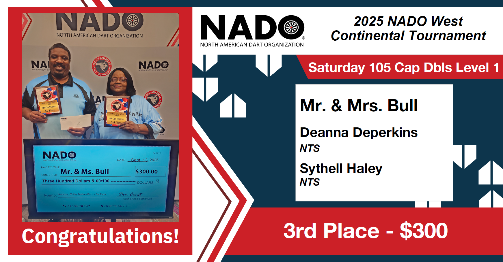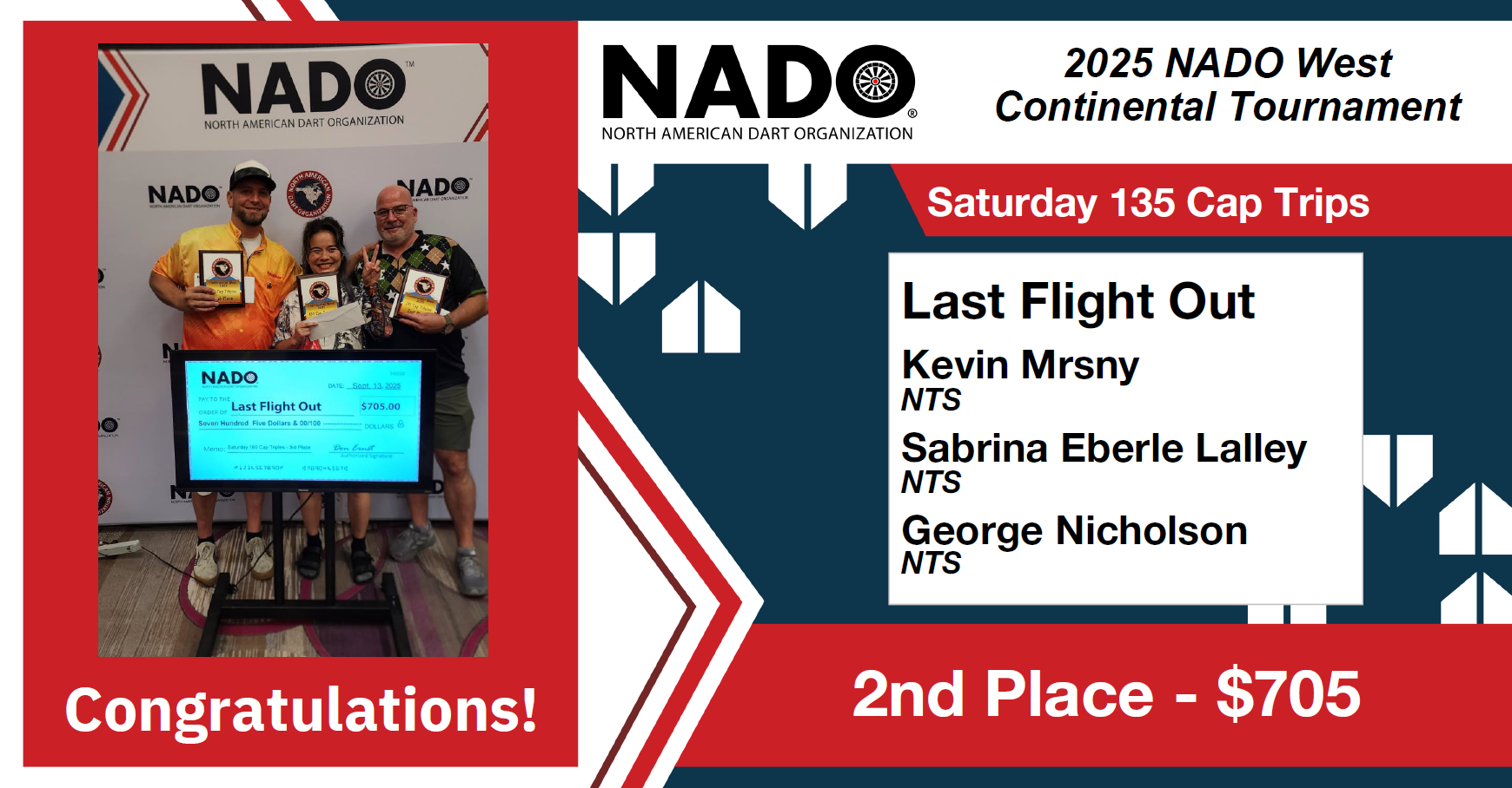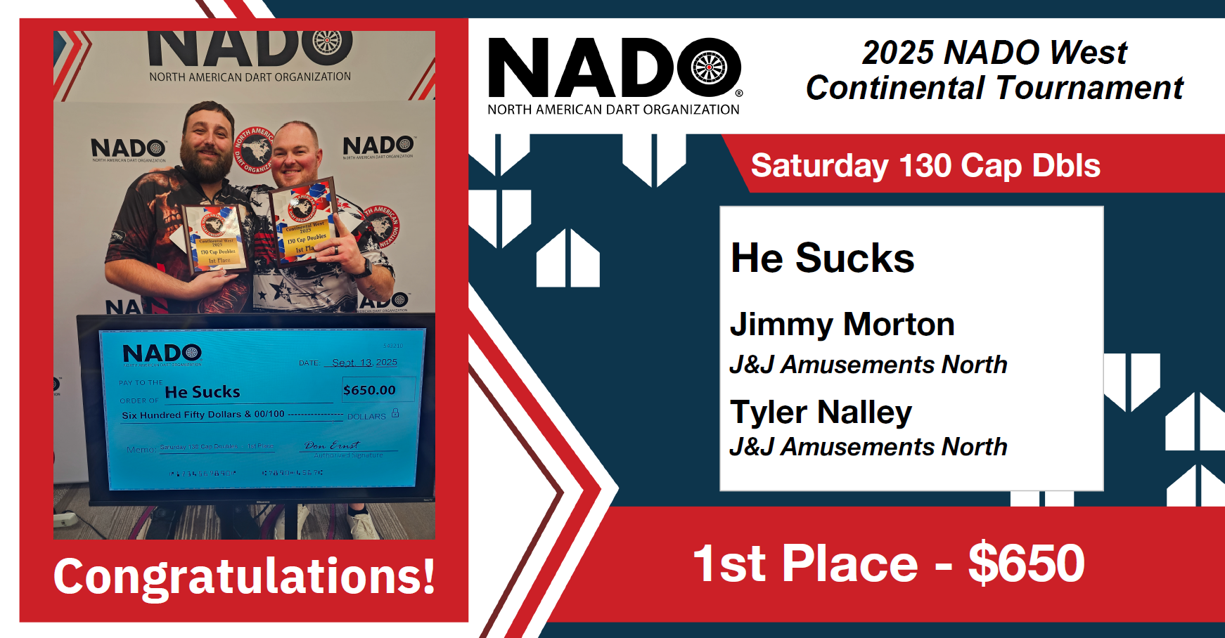 $7,005.00 was awarded at this event. Players earned 5 NADO Post Season points for participation.