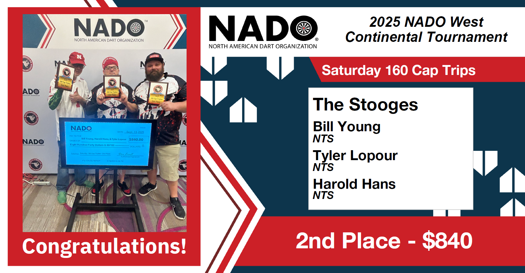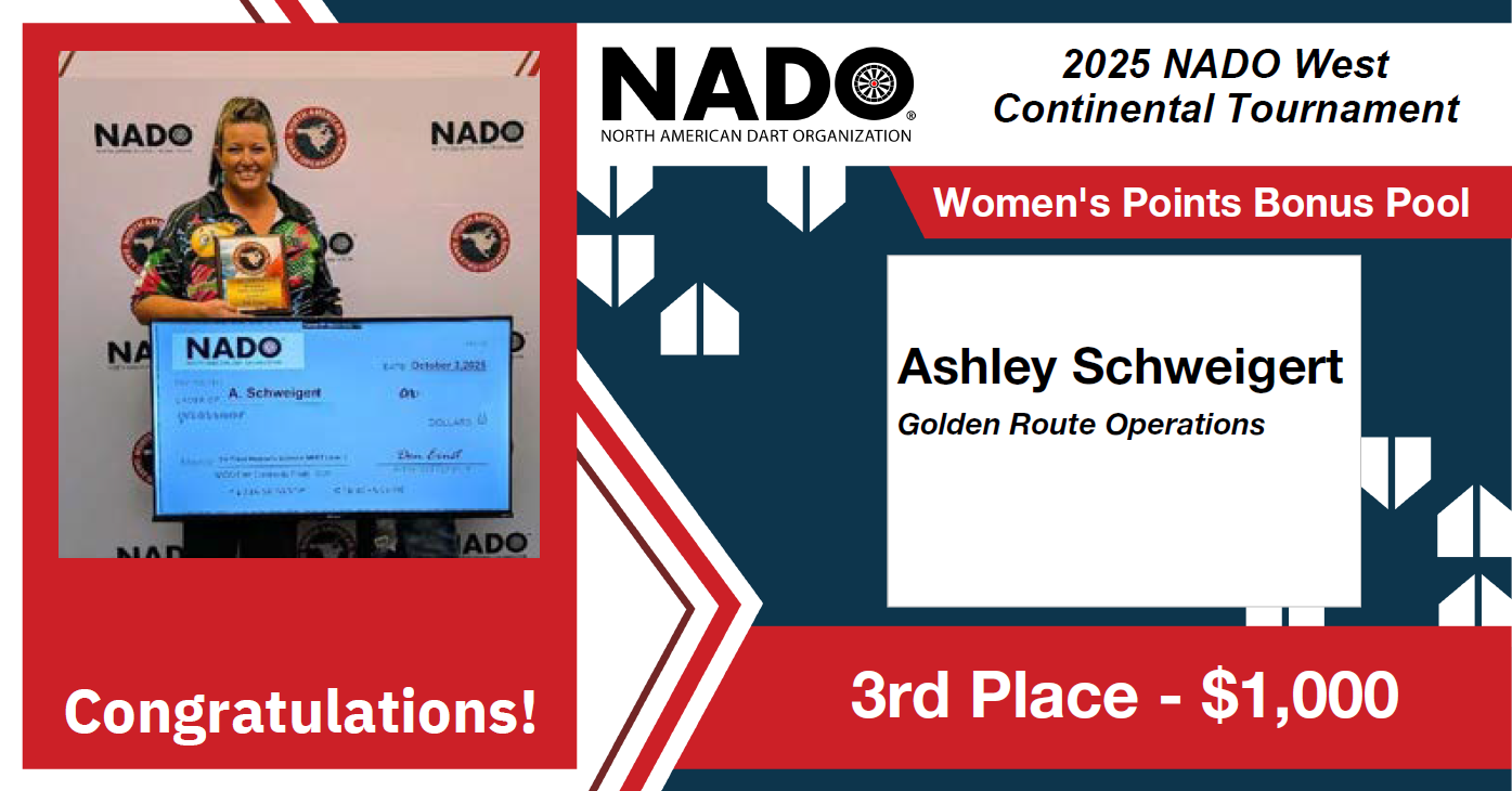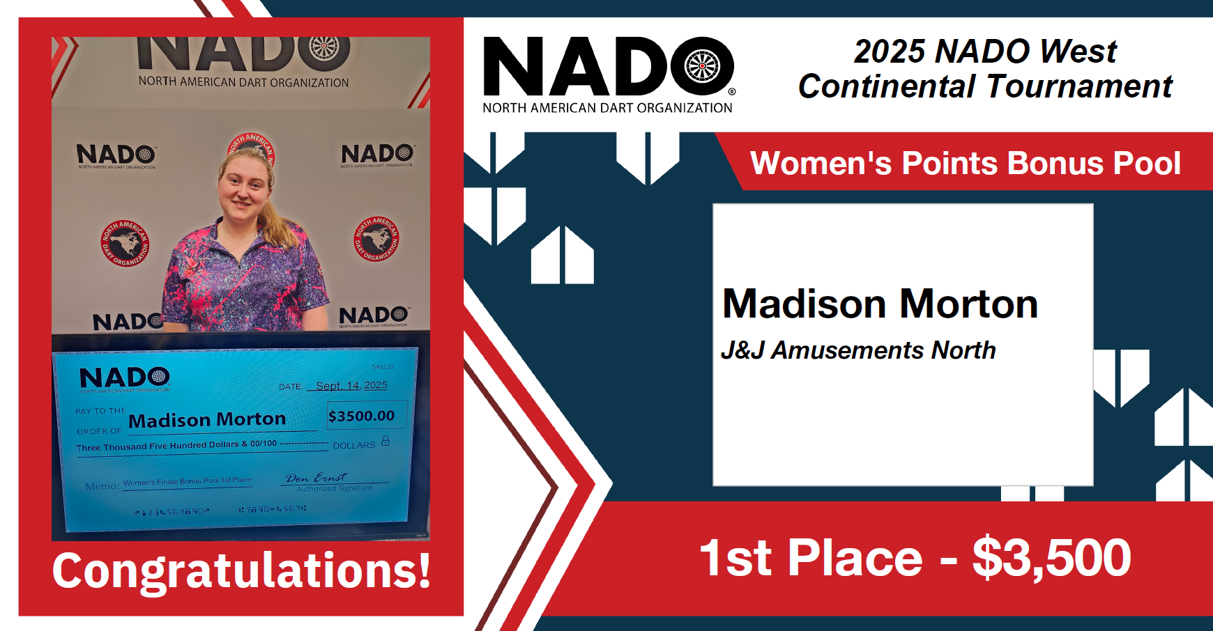 NADO players will have their regular season points combined with their NADO post season points to get their Final NADO Season points total. Players are guaranteed 30 points by playing in the main events at the NADO Finale. They can earn as high as 70 points. Earn 150 points in your local franchisee's reward program regular season and play in all the main events at the NADO Finale and you will reach the Ton 80 Club regardless of skill. All players that reach the Ton 80 Club will get an equal share of the Ton 80 Club pool. This has the effect of guaranteeing some travel funds to those players that reach a minimum level of play in their local markets and then decide to come to the NADO Finale event.