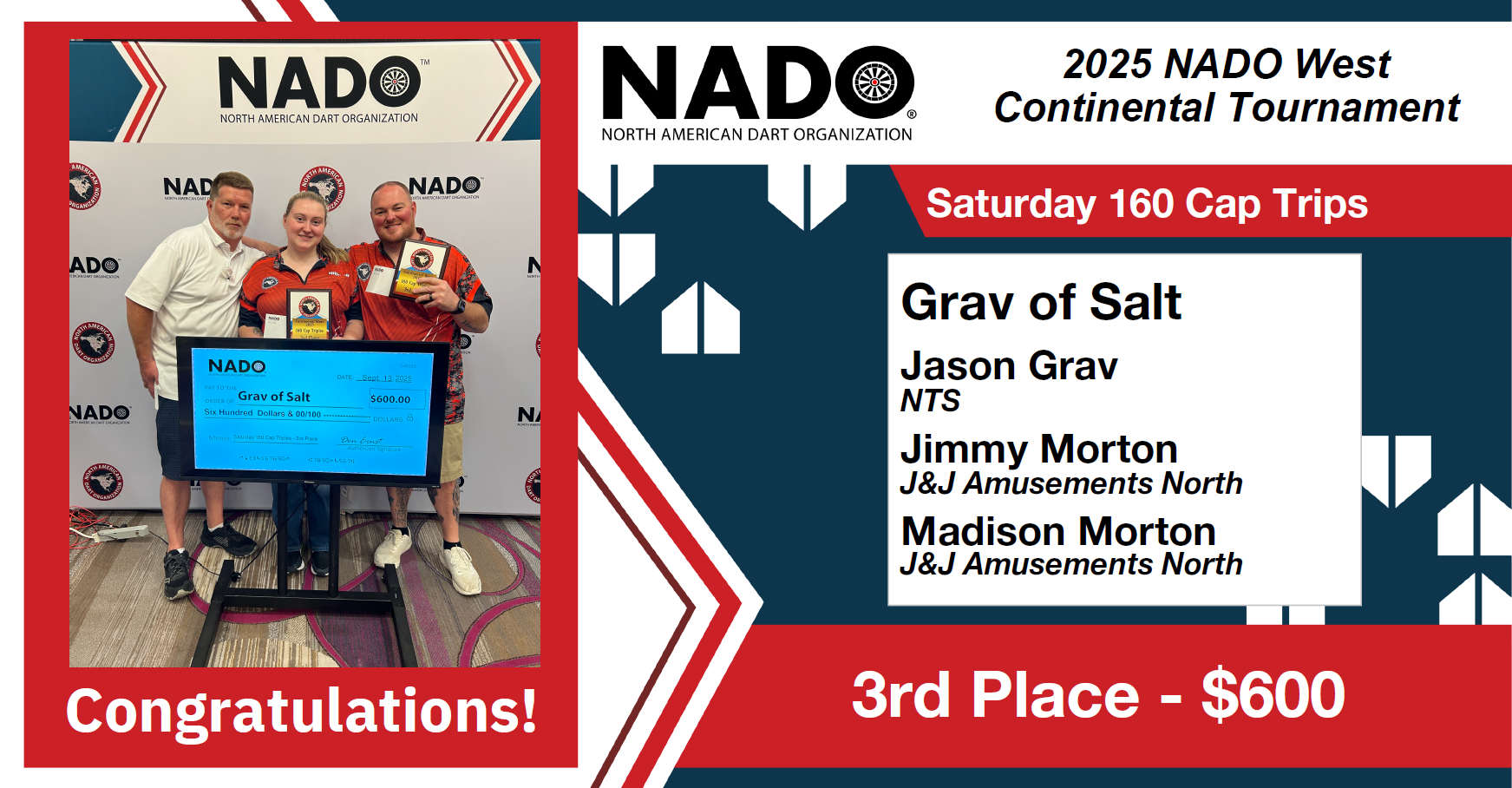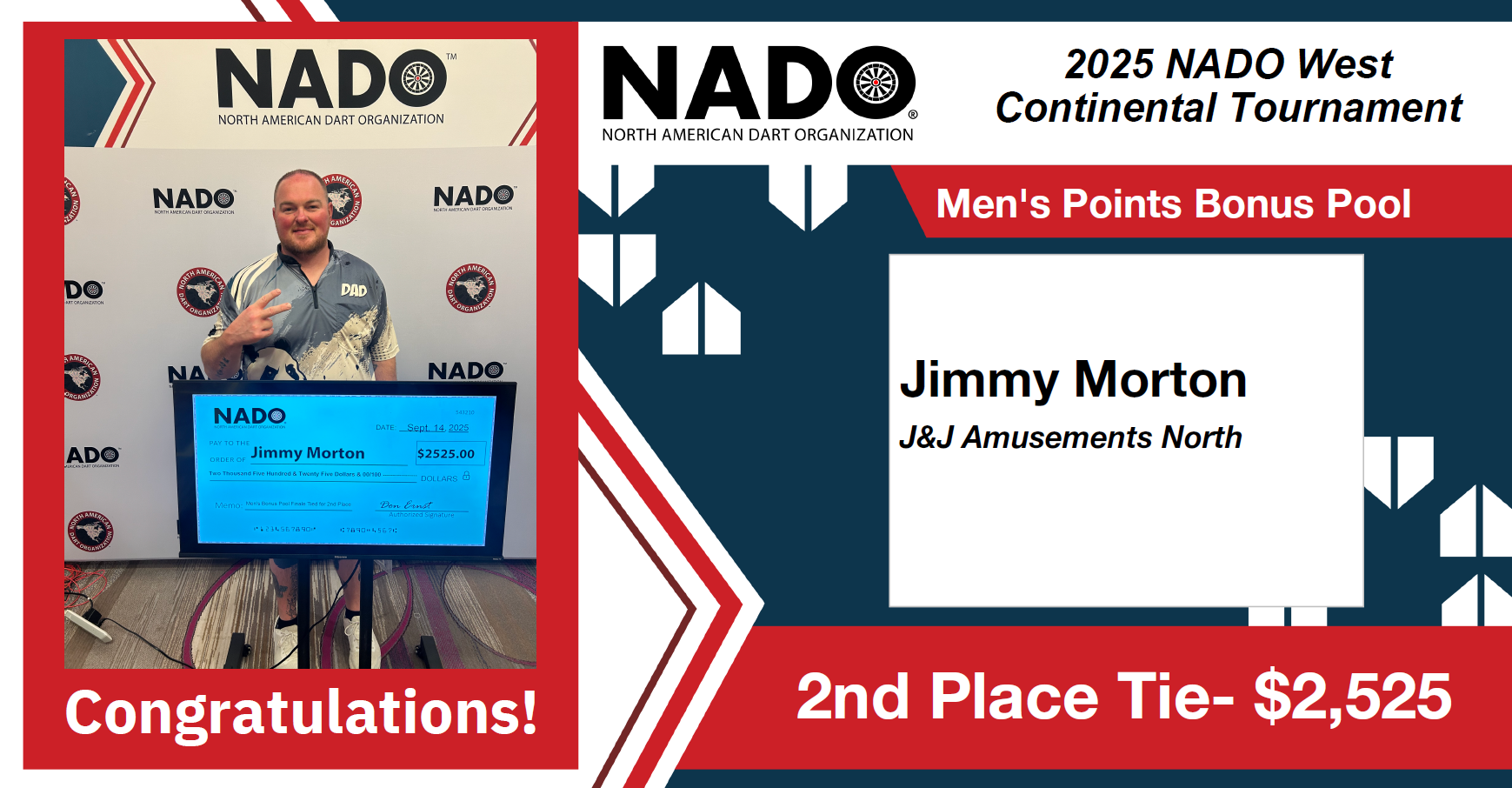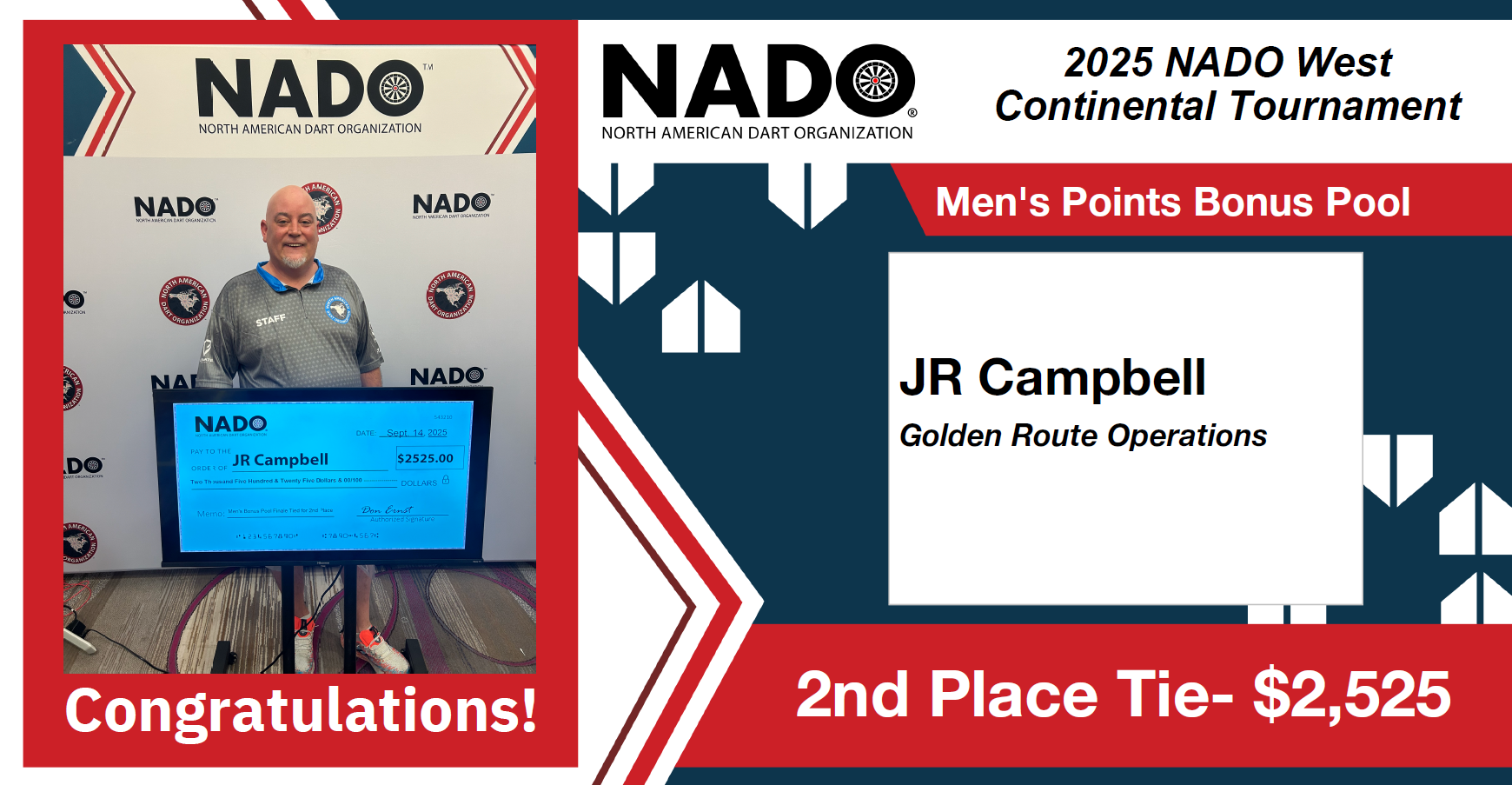 NADO players will have their regular season points combined with their NADO post season points to get their Final NADO Season points total. Players are guaranteed 30 points by playing in the main events at the NADO Finale. They can earn as high as 70 points. Earn 150 points in your local franchisee's reward program regular season and play in all the main events at the NADO Finale and you will reach the Ton 80 Club regardless of skill. All players that reach the Ton 80 Club will get an equal share of the Ton 80 Club pool. This has the effect of guaranteeing some travel funds to those players that reach a minimum level of play in their local markets and then decide to come to the NADO Finale event.