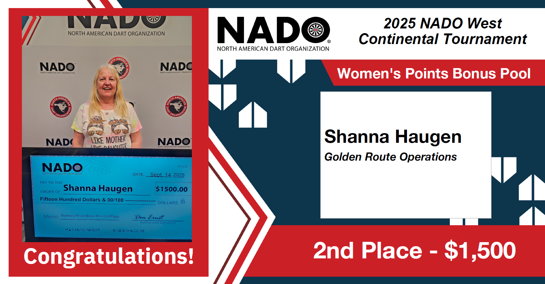 NADO players will have their regular season points combined with their NADO post season bonus pool race points to get their Final NADO Season points total. Their finishing position within their division will determine the amount of their NADO Continental Bonus Pool Prize Money.
